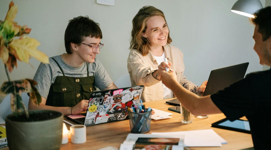 Par de colaboradoras que estudiaron una carrera en inglés comparten el tiempo mientras trabajan.Ventajas de estudiar idiomas en la universidad