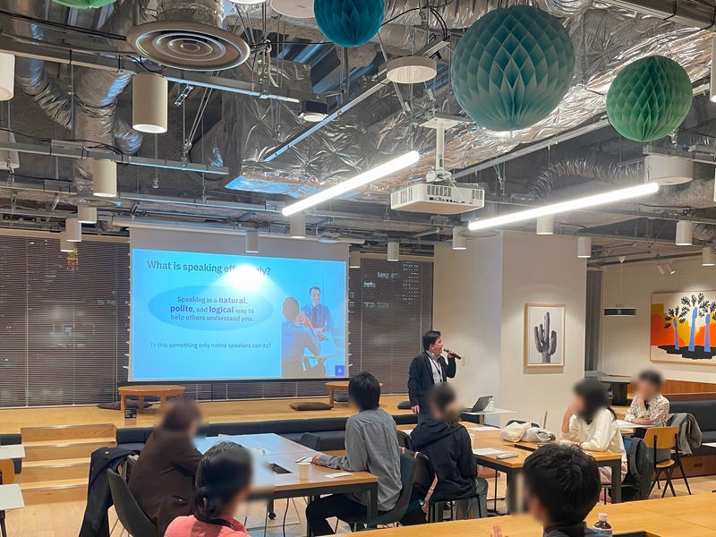 東京・丸の内のフレキシブルオフィスWeworkで、英語を話すのが不安なビジネスパーソンに向けた、実践型の英語スピーキング体験ワークショップを開催しました。自己紹介やビジネス会話をテーマにした実践練習をカジュアルな雰囲気でリラックスして学べる環境で、初めは控えめだった参加者も、ワークショップの進行とともに積極的に話すように変化していきました。その様子をご紹介します。まず一歩踏み出したい方、英語に触れるきっかけづくりにあなたも参加しませんか?気軽に始める、英語スピーキング体験